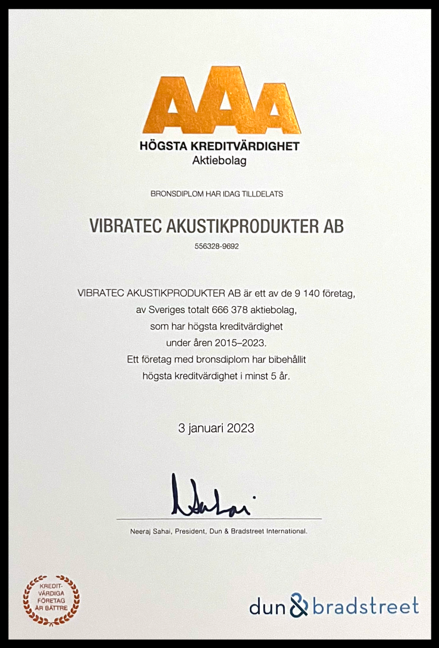 We are proud to announce that Vibratec has once again achieved the prestigious AAA rating according to Dun & Bradstreet – a rating that we have consistently maintained over the past 8 years.