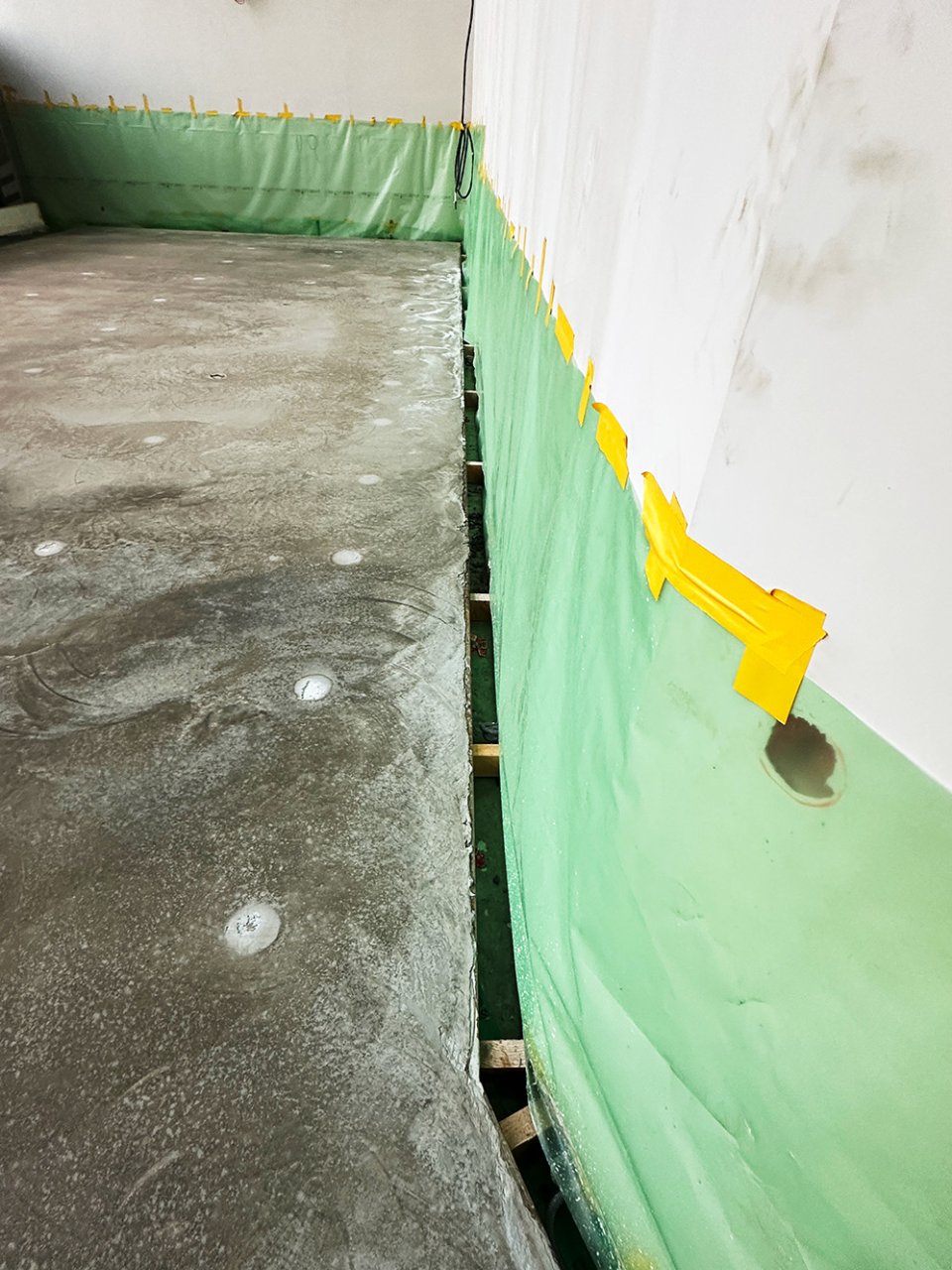 Cured concrete slab in the drying process.