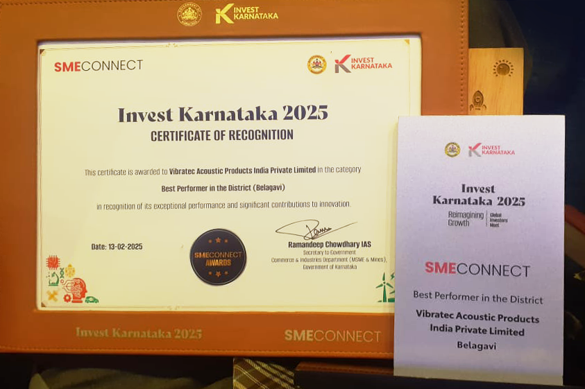 We are proud to announce that Vibratec India has been awarded Best SME in the Belgaum district at the Invest Karnataka 2025 Global Summit!