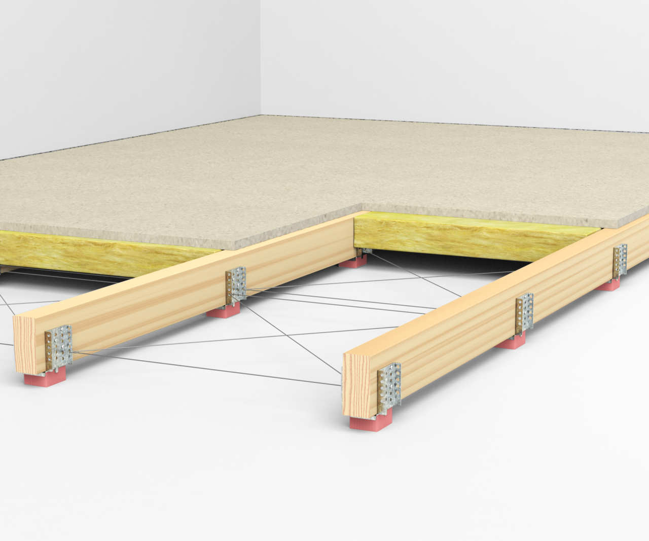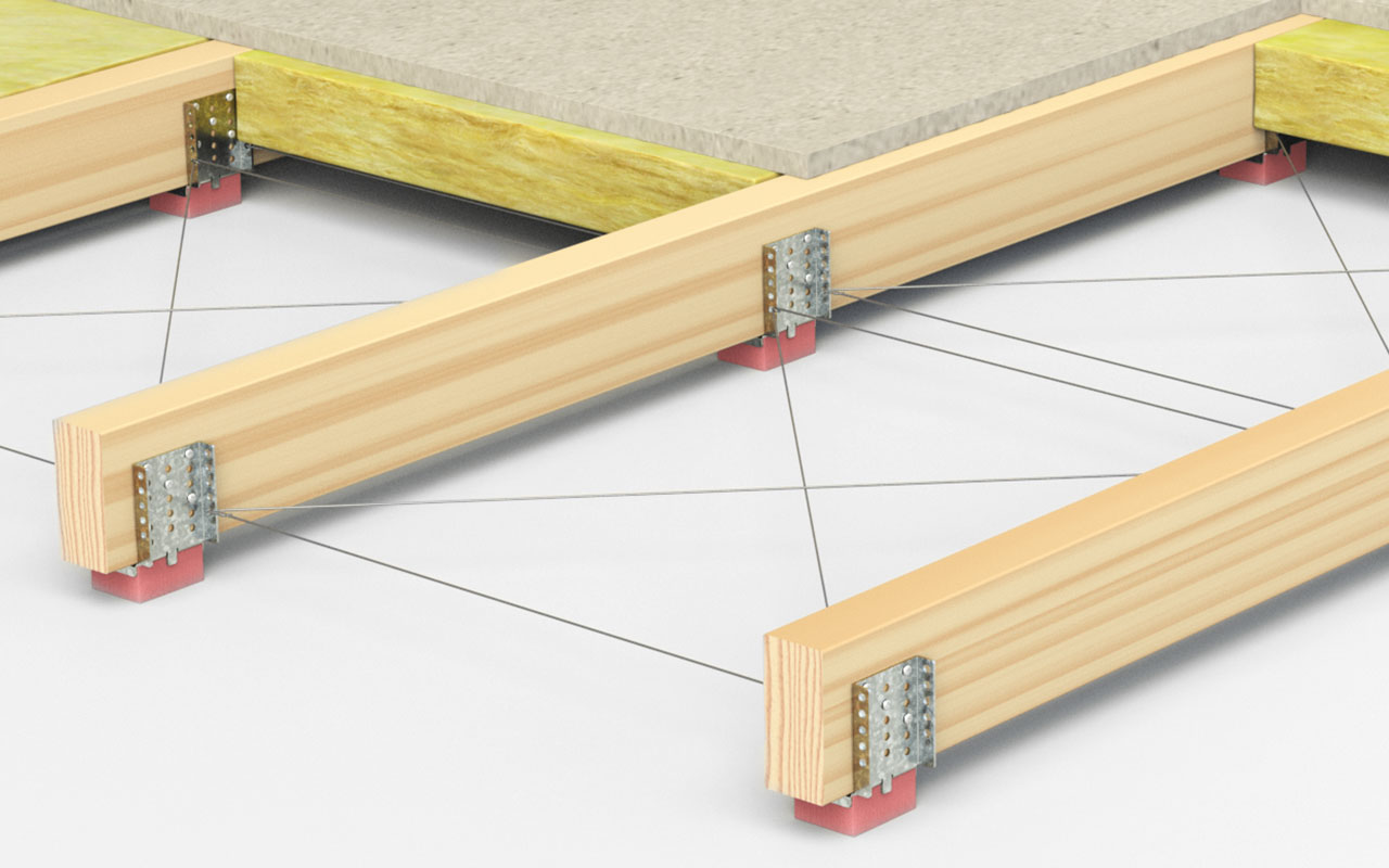A new, lower version of the Flexible Floor Bracket VT-FFB is now available, making it possible to construct floating floor systems using 45 × 45 mm timber joists.