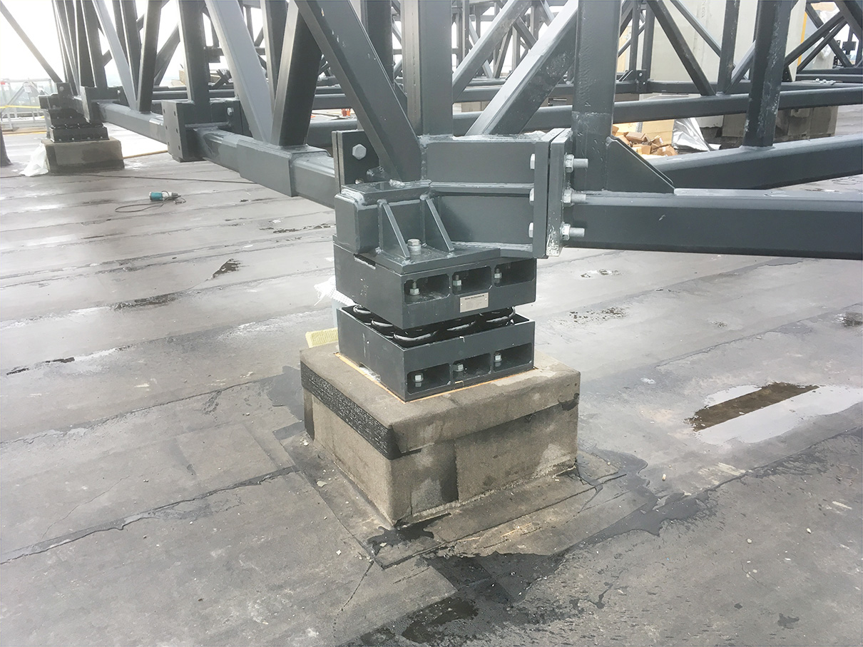 En vanlig teknikk er bruk av et "baseisolasjonssystem", som er utformet for å koble bygningen fra grunnen ved hjelp av en rekke fleksible elementer, som for eksempel lagre eller pads, mellom bygningens fundament og grunnen. Dette gjør at bygningen kan bevege seg uavhengig av grunnen, noe som reduserer overføringen av vibrasjoner fra utsiden til innsiden av bygningen.