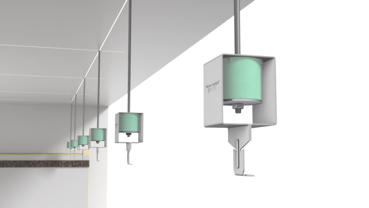 VT-CBC-taksystem - et elastisk nedhengt akustisk taksystem som minimerer lydoverføring.
