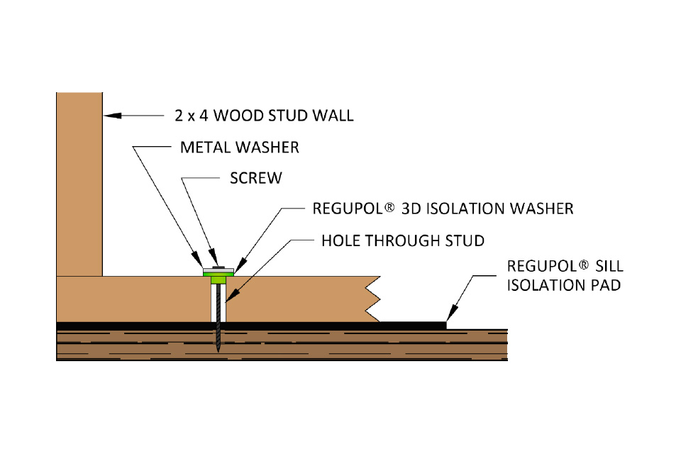 Regupol® 3D Isolation Washers reduce flanking noise transmitted by mechanical fasteners. The top-hat design effectively eliminates the transfer of vibration via decoupling.