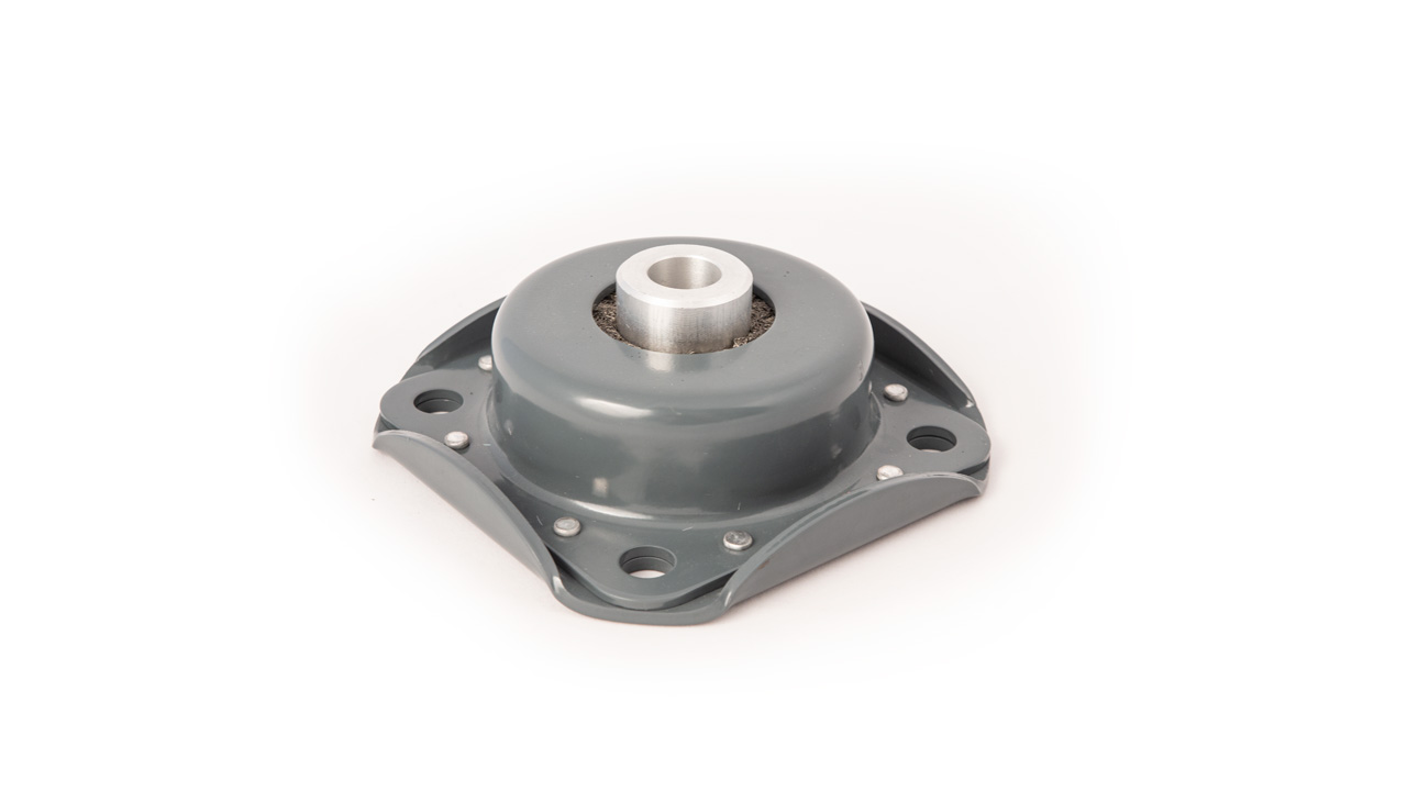 Resilient elements are made of 18/8 stainless steel wire mesh, stud in aluminium, casing in steel.