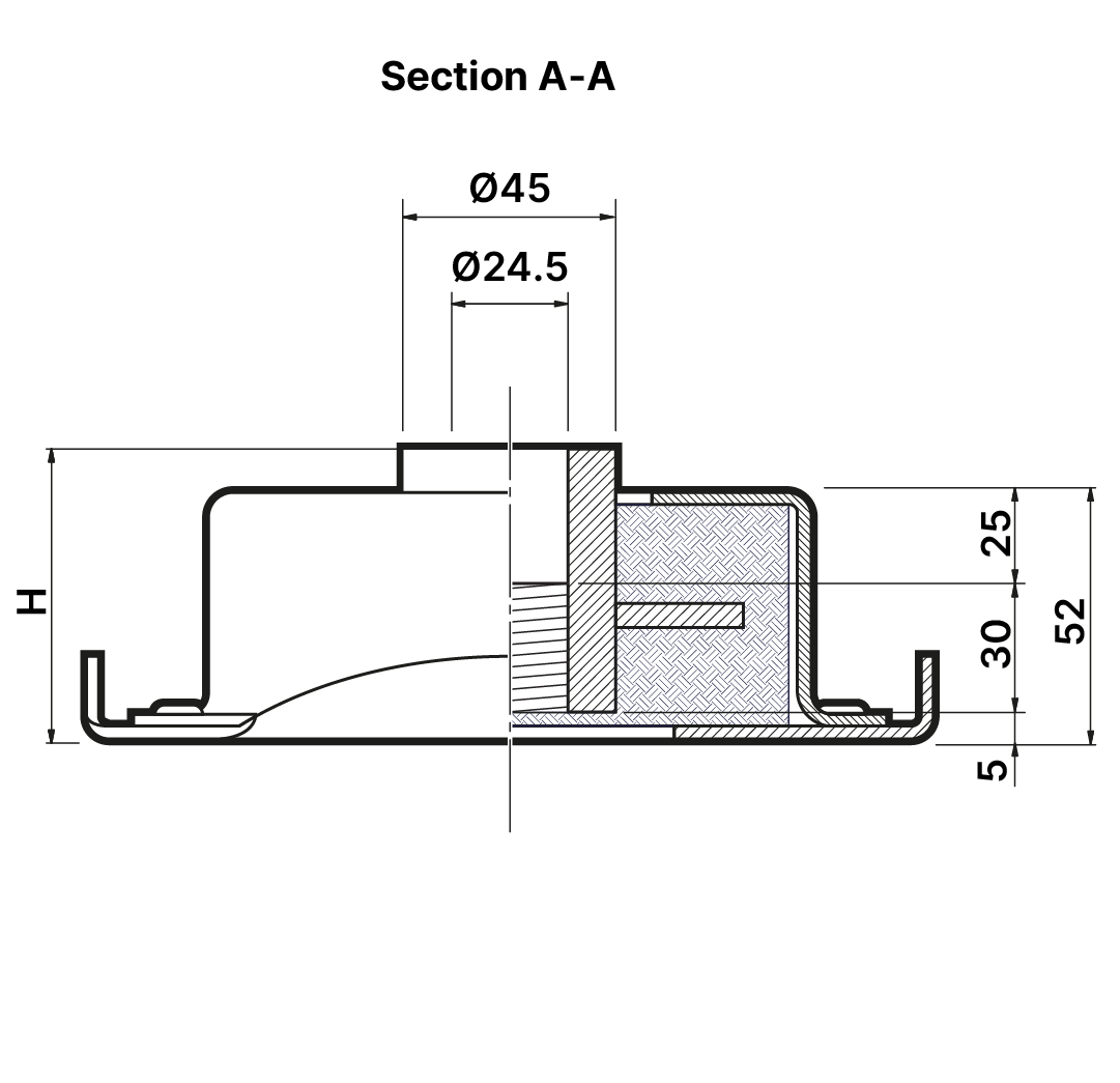 Unloaded height (H): 66 mm