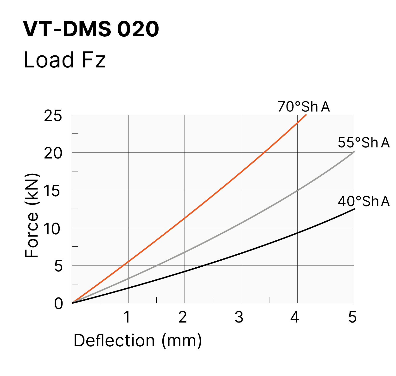 | Type | Load in daN (≈ kg) at 3 mm deflection | Max load in daN (≈ kg) at 5 mm deflection | Weight (kg) | ||||