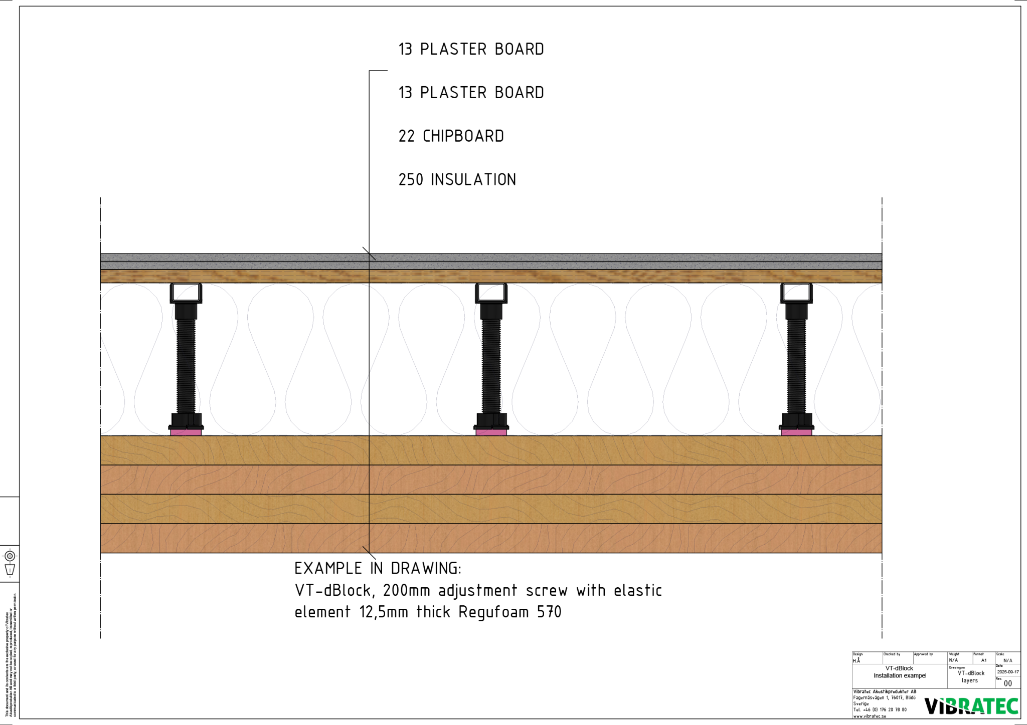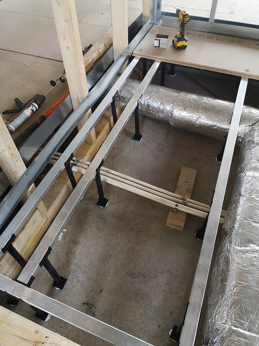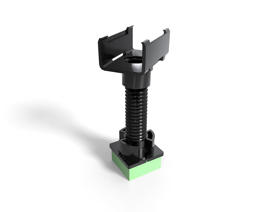 The system is as simple as building a standard floor of wood and chipboard – but with the benefits of adjustability in terms of sound and construction height. The adjusting screw is available in 2 standard lengths: 200 mm and 400 mm.