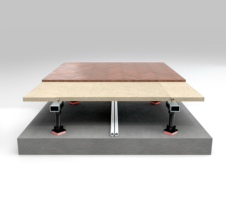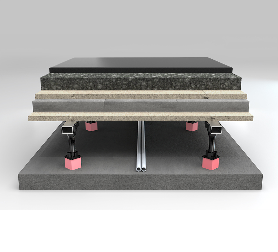 VT-dBlock is an adjustable system for raised floors specially developed for a quick and easy installation and for effective impact and airborne sound isolation.