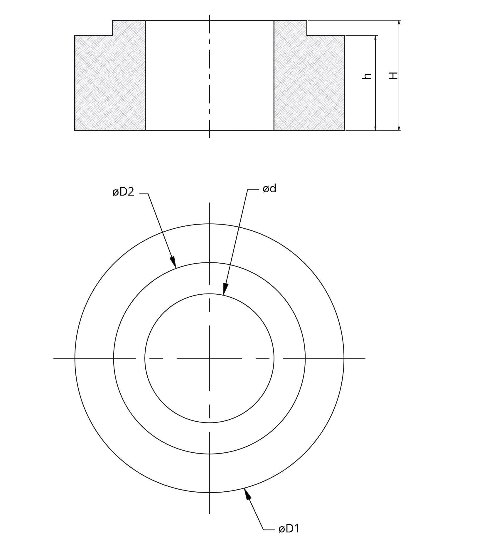 | øD1 | øD2 | ød | H | h | ||