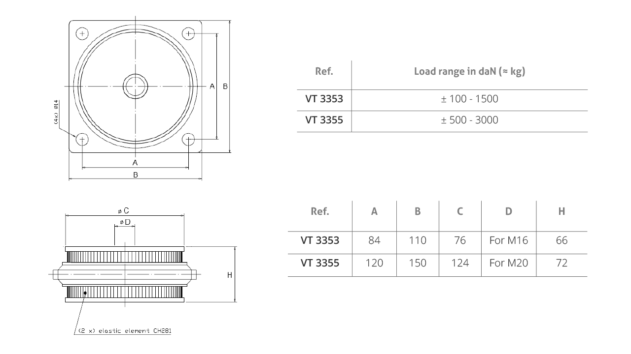 Vibration isolation for all kind of heavy units, gas turbines, offshore accommodation modules etc. Protection from high dynamic forces (impacts) of punching machines, power presses, etc.