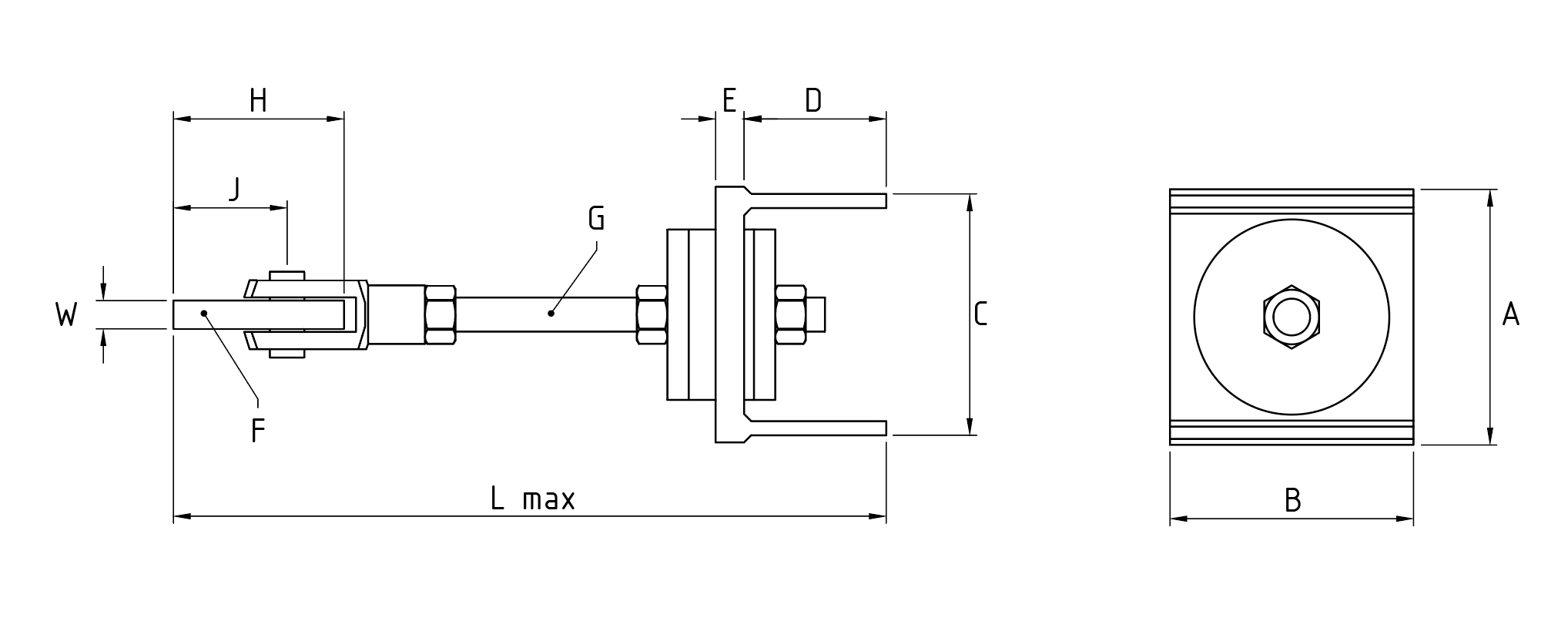 | Ref. | A | B | C | D | E | G | Lmax | F (LxWxH) | J |