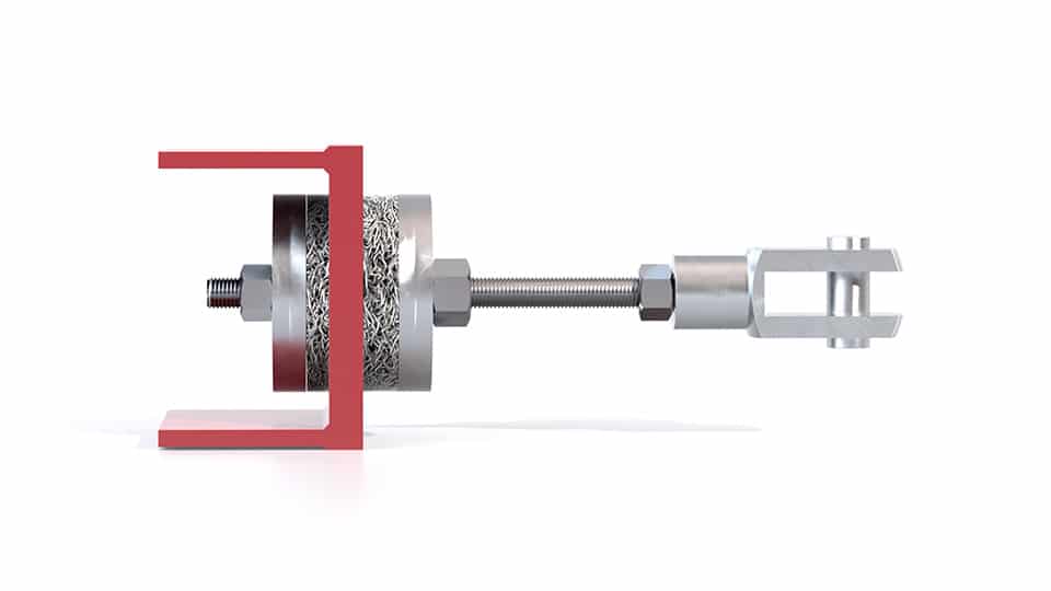 Double acting all metal pendulum mount. Resilient element, cushion in stainless steel wire. Other parts in painted mild steel.