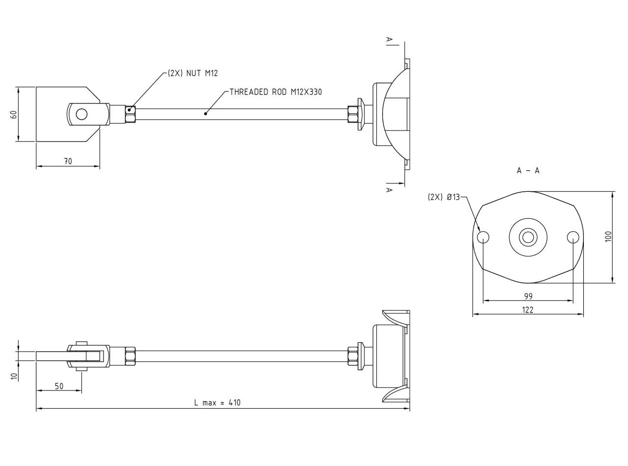 The total length of the extension rod is 330 mm. Of course a longer rod can be used, but there is a risk of breaking during compression loads