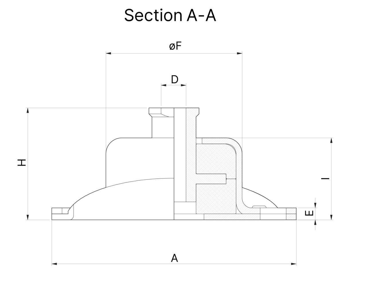 VTCI-isolator in steel (ceramic coated) with stainless steel resilient cushions. Other parts in galvanised steel.