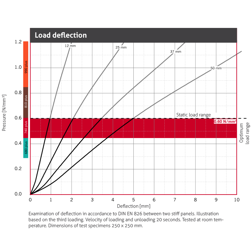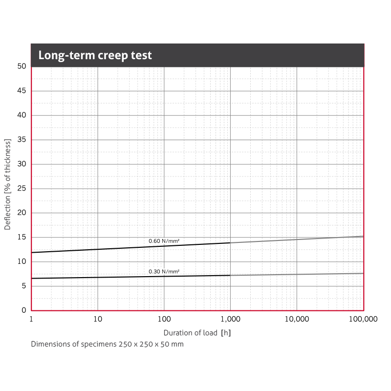| Static modulus of elasticity | Based on EN 826 | 4.3 - 5.9 N/mm2 | Tangential modulus, see figure “modulus of elasticity” |