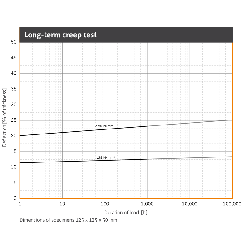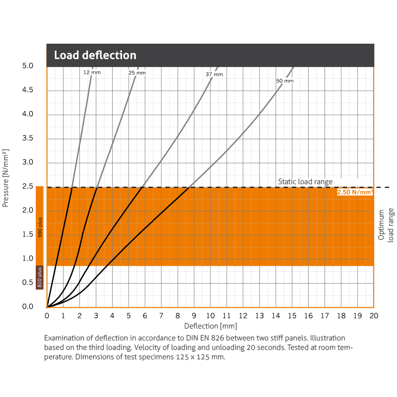 | Static modulus of elasticity | Based on EN 826 | 20.0 - 78.0 N/mm2 | Tangential modulus, see figure “modulus of elasticity” |