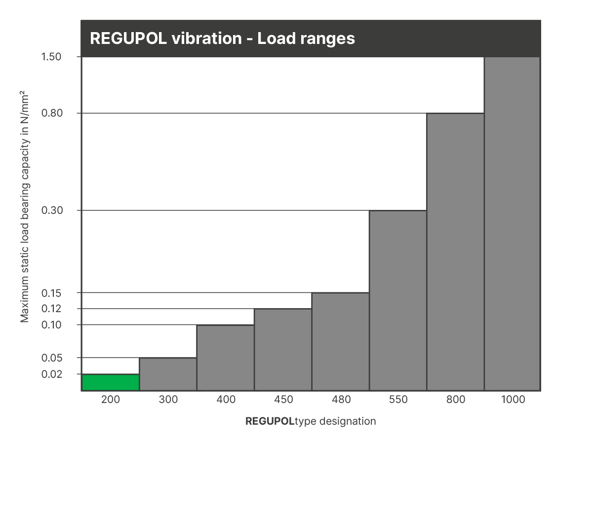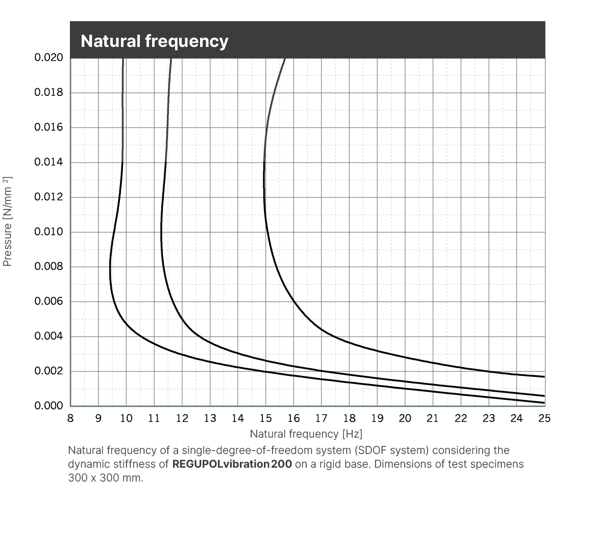 Regupol® vibration is a rubber-polyurethane-composite for vibration isolation. It can be used in single or multiple layers to achieve natural frequencies of down to 10 Hz, depending on load and material thickness.