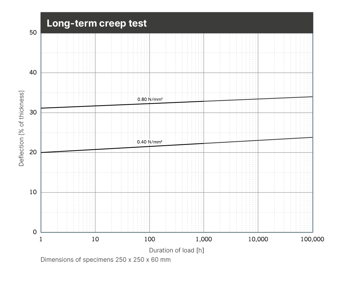 | Static modulus of elasticity | Based on EN 826 | 1.2 - 2.9 N/mm2 | Tangential modulus, see figure “modulus of elasticity” |