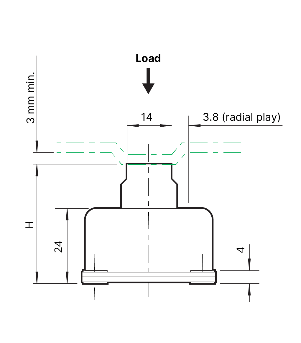 For larger loads, refer to isolator VT-7002 (0.7 – 60.0 daN).
