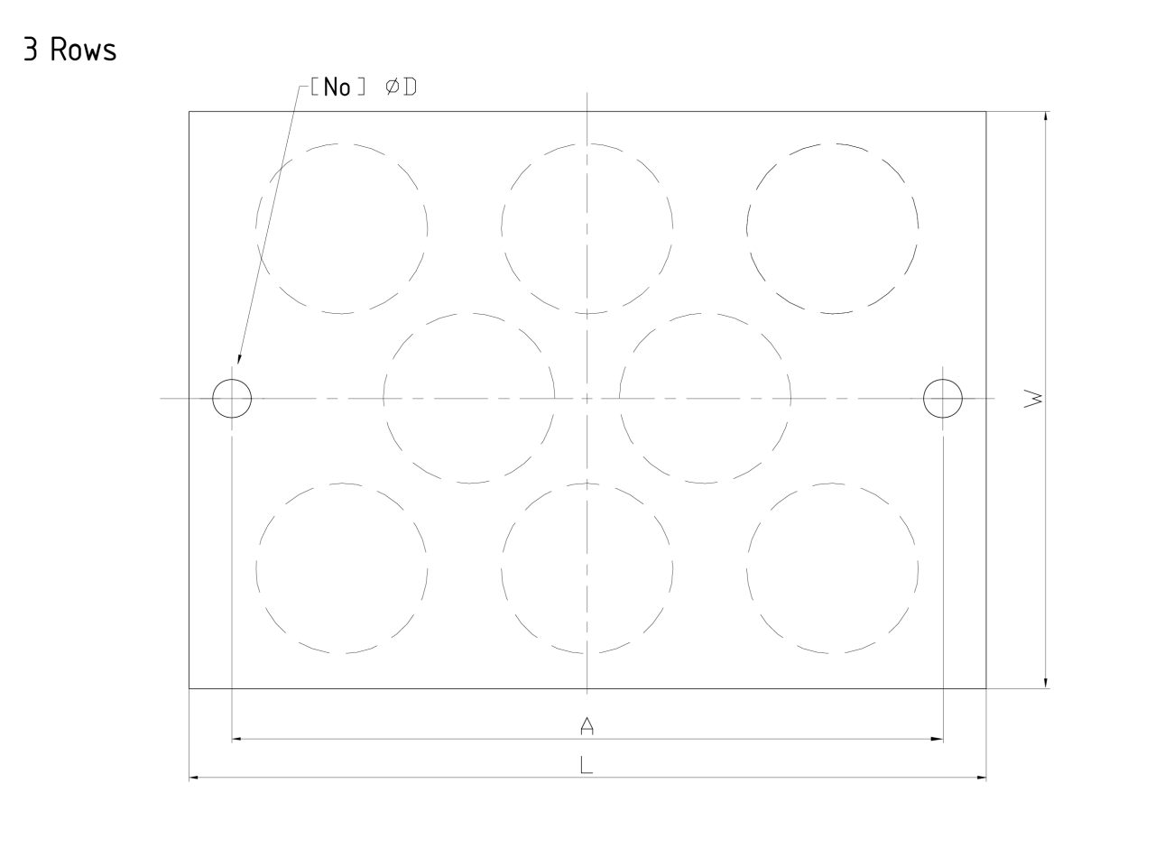 | No. of springs | Rows | L | W | VT4422-X6 & VT4423-X6 | VT4424-X7 | A | B | Dia D | Nx holes | ||