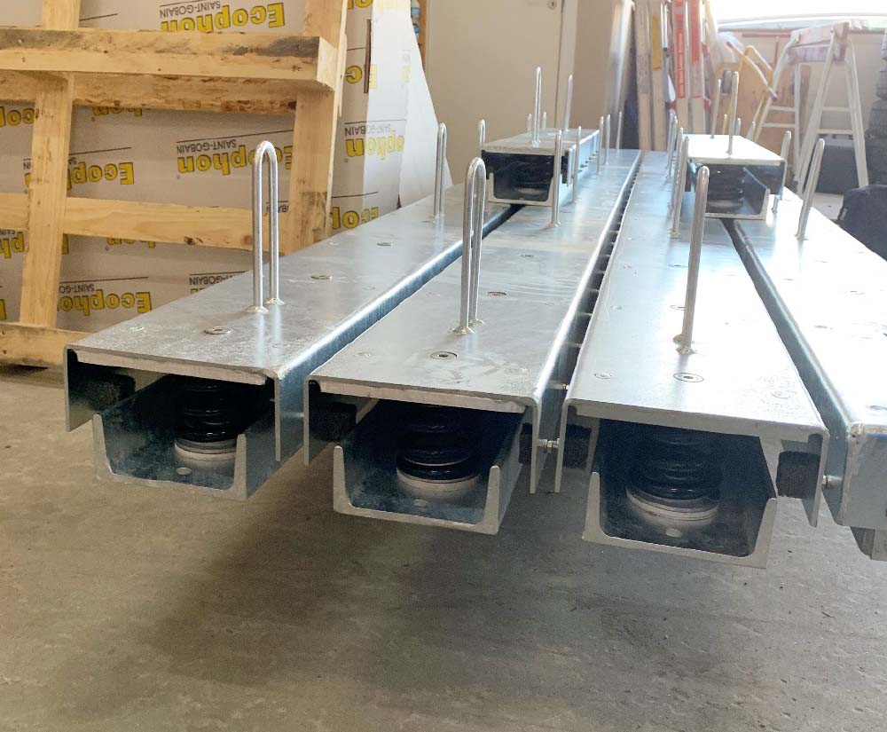 Vibratec has supplied specially designed steel beams with integrated springs and cushions, to carry a roof-top basketball court in Odense, Denmark.