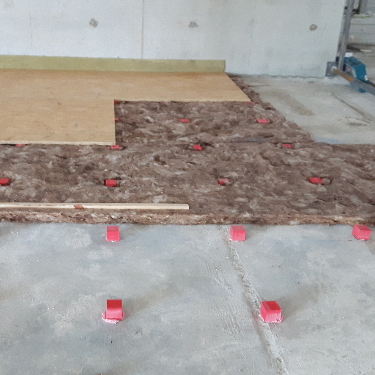 Totalt 199 rum har försetts med flytande betonggolv (Vibratec-system VT-FLOAT). Tjockleken på de flytande betongplattorna varierar mellan 80 och 200 mm och de elastiska kuddarna levererades i höjder mellan 50 och 200 mm.